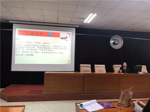 为弘扬中国优秀传统文化,强化大学生传统文化教育,近日,院团委在行政综合楼举办“解读弟子规”专题知识讲座,邀请主讲人马兆娣教授为300余名学生代表授课。
