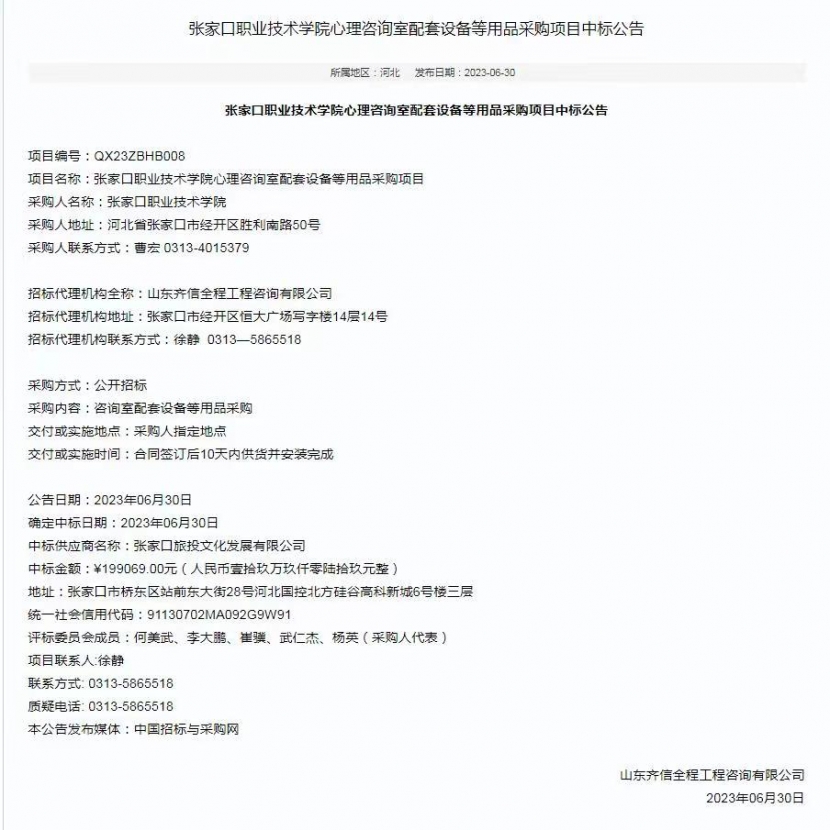 beat365官方网站心理咨询室配套设备等用品采购项目中标公告