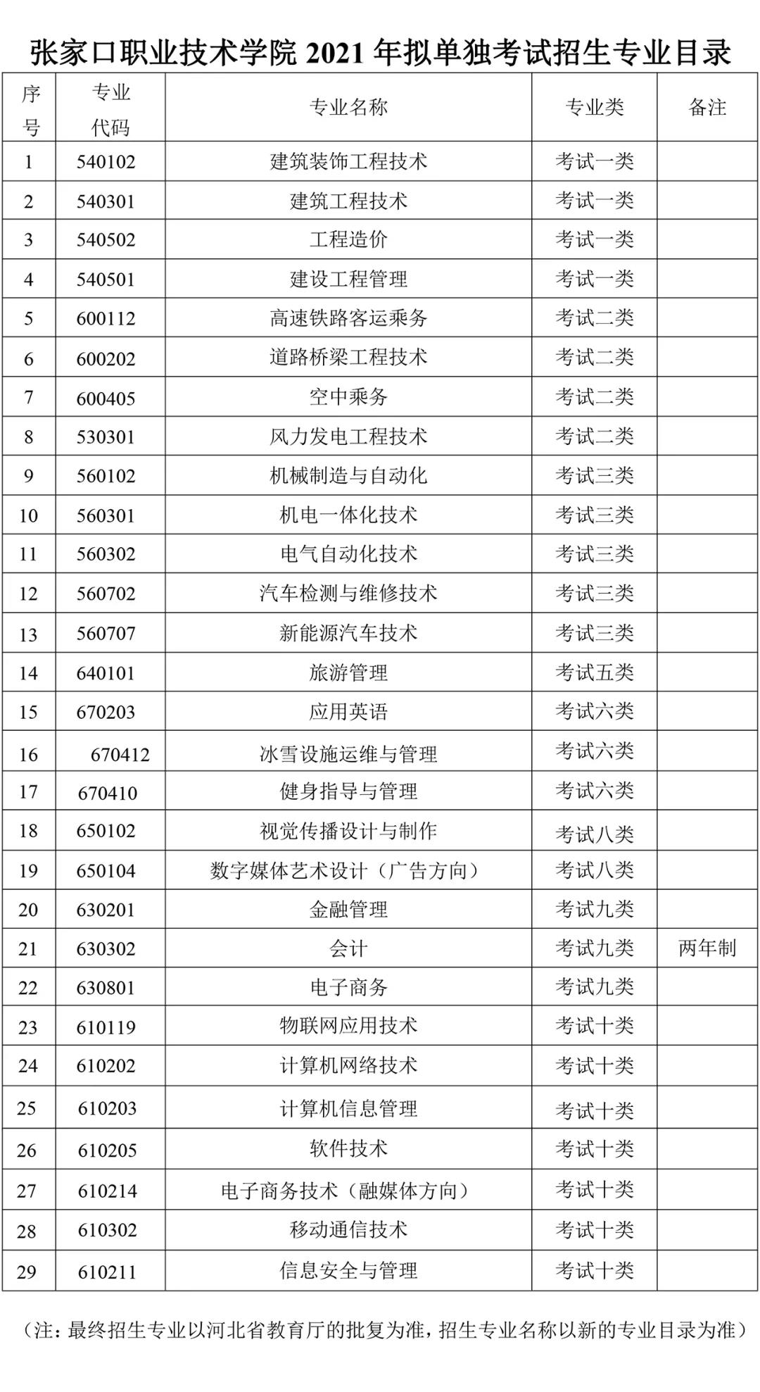 ②高考报名时考试类型选择“对口”的考生(以下简称“对口考生”),可不选择考试类,默认按考生高考报名时所选的专业类向相应牵头院校缴费并按要求参加考试(具体招生专业详询招生院校或以公布的招生计划为准);也可从统考计划10个考试类中另选一类,与该类的统考考生一起参加考试、录取。