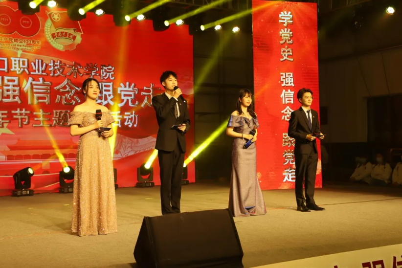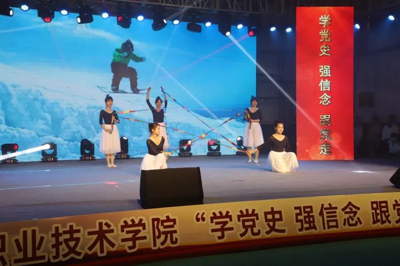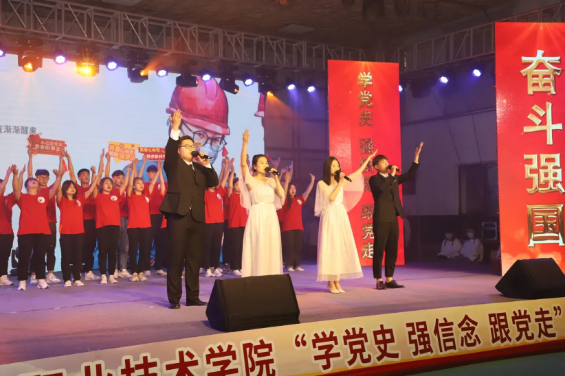 活动过程中,精心编排的文艺演出将整场气氛不断推向高潮。大学生青春文艺团的合唱《少年》,诠释出新时代青年学生一心向党、昂扬奋进的精神风貌;话剧《觉醒年代》艺术地再现了一百年前峥嵘岁月中,中国先进分子和热血青年通过思想转变不断探寻救国之路;情景剧《同心抗疫》回顾了2020年战“疫”过程中涌现出来的医生、警察、志愿者等不同优秀群体的先进事迹,向每一位在抗击疫情中舍小家为大家的人民公仆表达敬意;合唱《当代力量》唱出了广大青年学生对祖国的热爱,对中国战疫英雄的敬意;歌曲《少年中国说》呈现了青春校园中青年学生积极向上、朝气蓬勃的精神面貌和为学校、社会、国家发展贡献力量的信心和决心;独舞《芳华》优美大气,抒发着对祖国深沉的爱;舞蹈《梦圆冬奥》表达了张职学子对2022冬奥会的美好祝福。