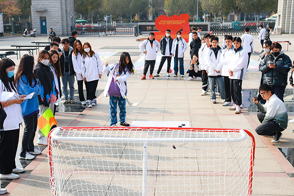 10月26日至11月2日,beat365官网赛会储备志愿者和热衷于冬奥项目的学生们齐聚知行广场,进行冬奥竞赛项目体验活动暨“奔向冬奥 志愿者在准备”冬奥竞赛项目大PK。在冬奥组委的大力支持下,学院为学生们配发了旱地冰壶、冰蹴球及冰球射门活动道具,将三个冬奥竞赛项目在同一时间向同学们进行展示与体验,使大家感受到冰雪项目的独特魅力。来自各院系16支团队的128名志愿者们按照赛前抽签分组进行了团体竞赛,按照16进8、8进4、4进2的赛制最终决出各项前三名。比赛过程中,同学们全力以赴,团结协作,赛出成绩,赛出友谊,展现出beat365官网学子喜迎冬奥的青春面貌。