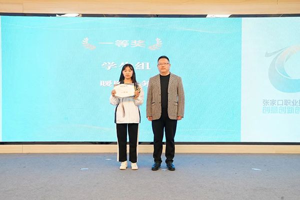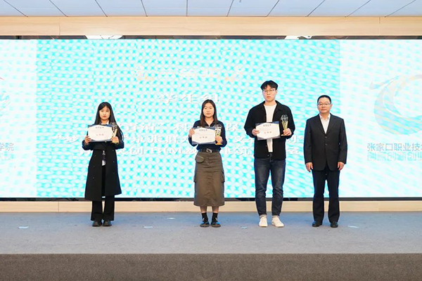 开元控股集团董事长侯冠夫、张家口工业设计创新中心部长姚亚莉和学院纪委书记周文胜分别为学生组一、二、三等奖获奖团队颁奖。