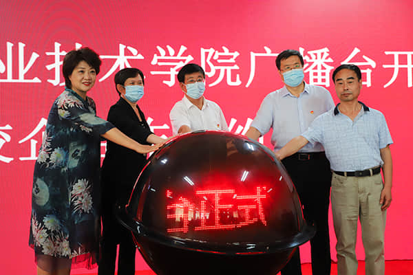 仪式上,学院党委书记冯印涛、张家口新闻传媒集团董事长刘庆国、市教育局副局长贺志英、河北北方学院法政学院院长吴凤翔、张家口新闻传媒集团播音部主任苑红莲共同为beat365官方网站广播台启动开播。