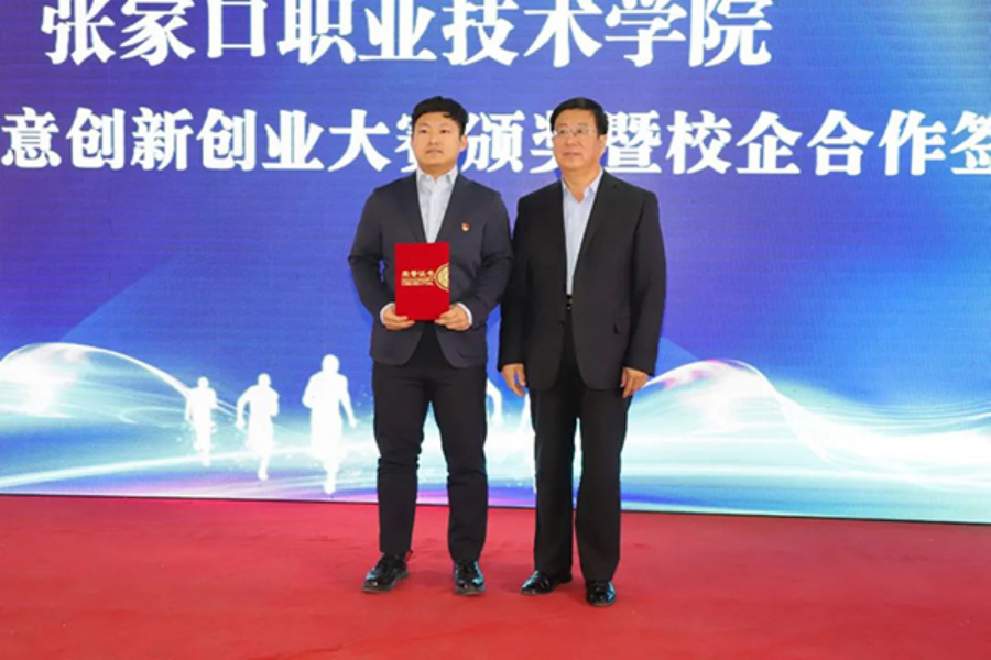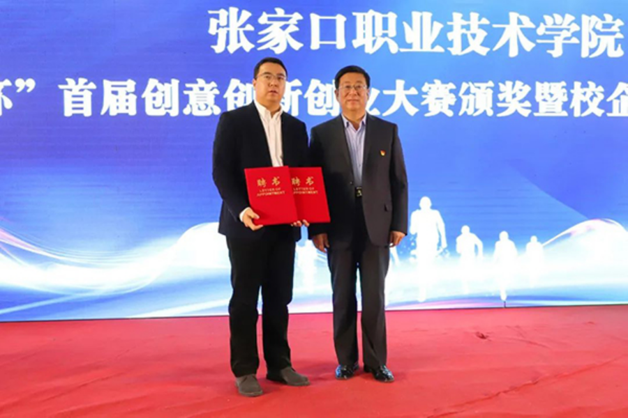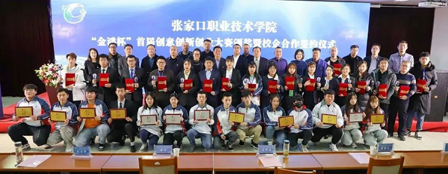 常务副院长李炜杰主持仪式;学院党委副书记杨汝明、副院长胡伟奇、纪委书记周文胜、副院长刘子林,宁波国信数据科技有限公司总经理王晖、张家口市人社局创业指导中心主任王亚轩、张家口市科技局生产力促进中心主任张志明、张家口工业设计创新中心主任范凤波、张家口西山联创科技企业孵化器总经理方晓岗、北京万贯科技有限公司总经理杨嘉出席仪式,并分别为获奖选手颁奖。