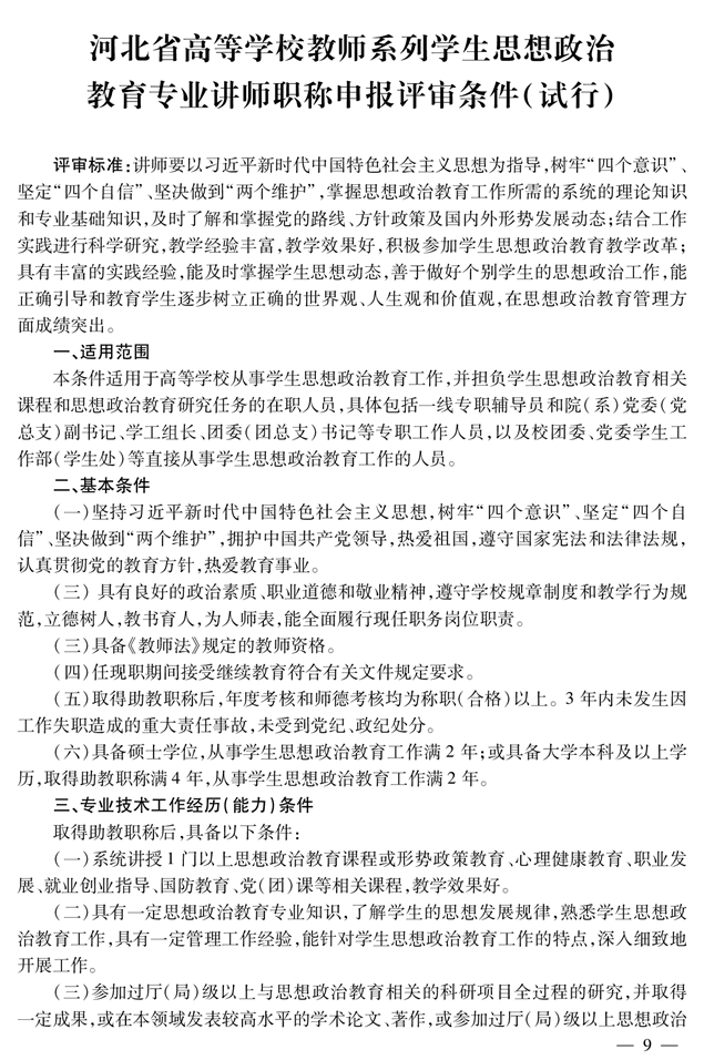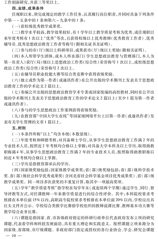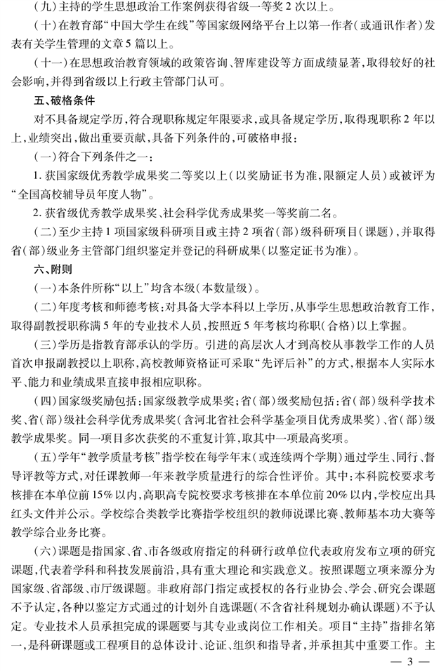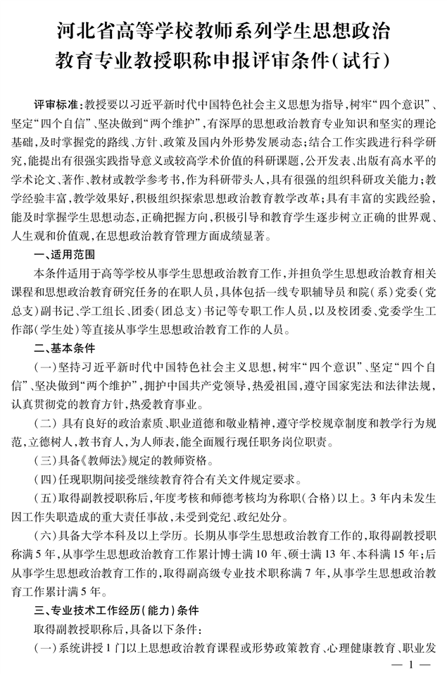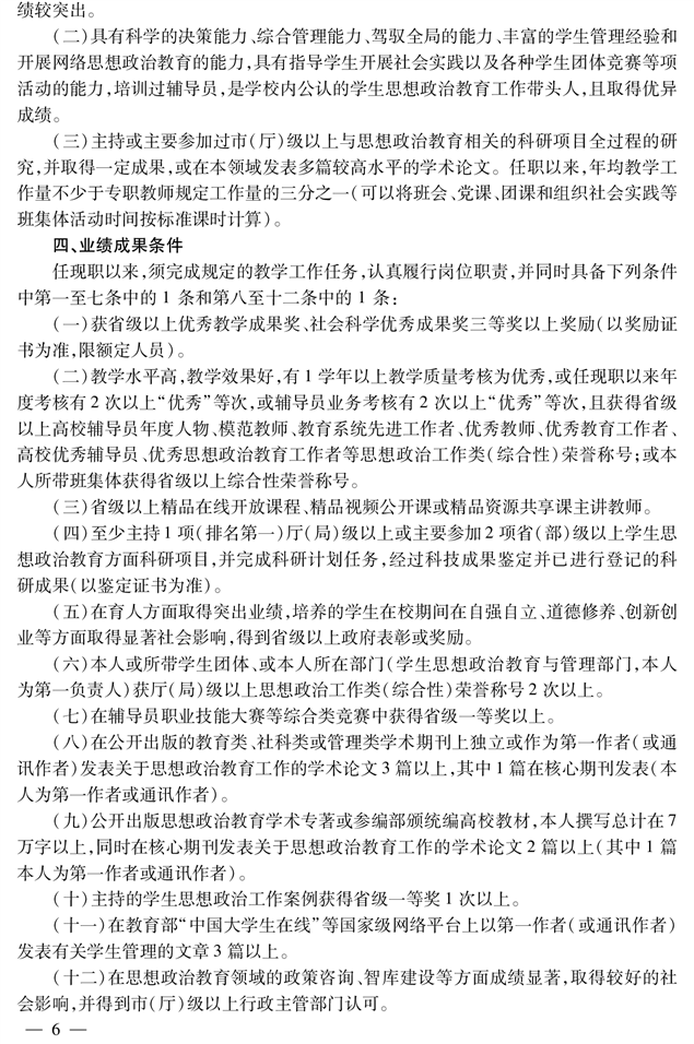 高校教师思政教育专业教授职称申报评审条件